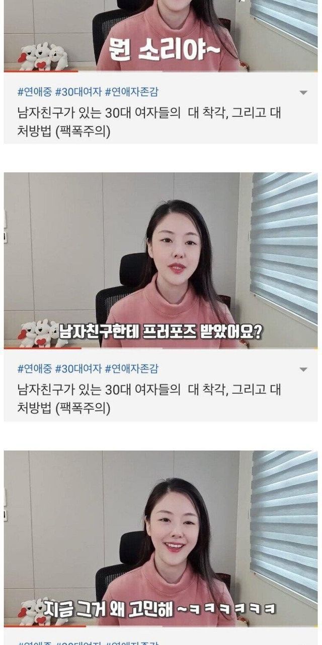 물론 저런 생각을 하는 여자들도 있겠지만 아닌 사람도 있고 굳이 가상의 30대녀를 혐오하고 싶지 않앙.... ㅠ